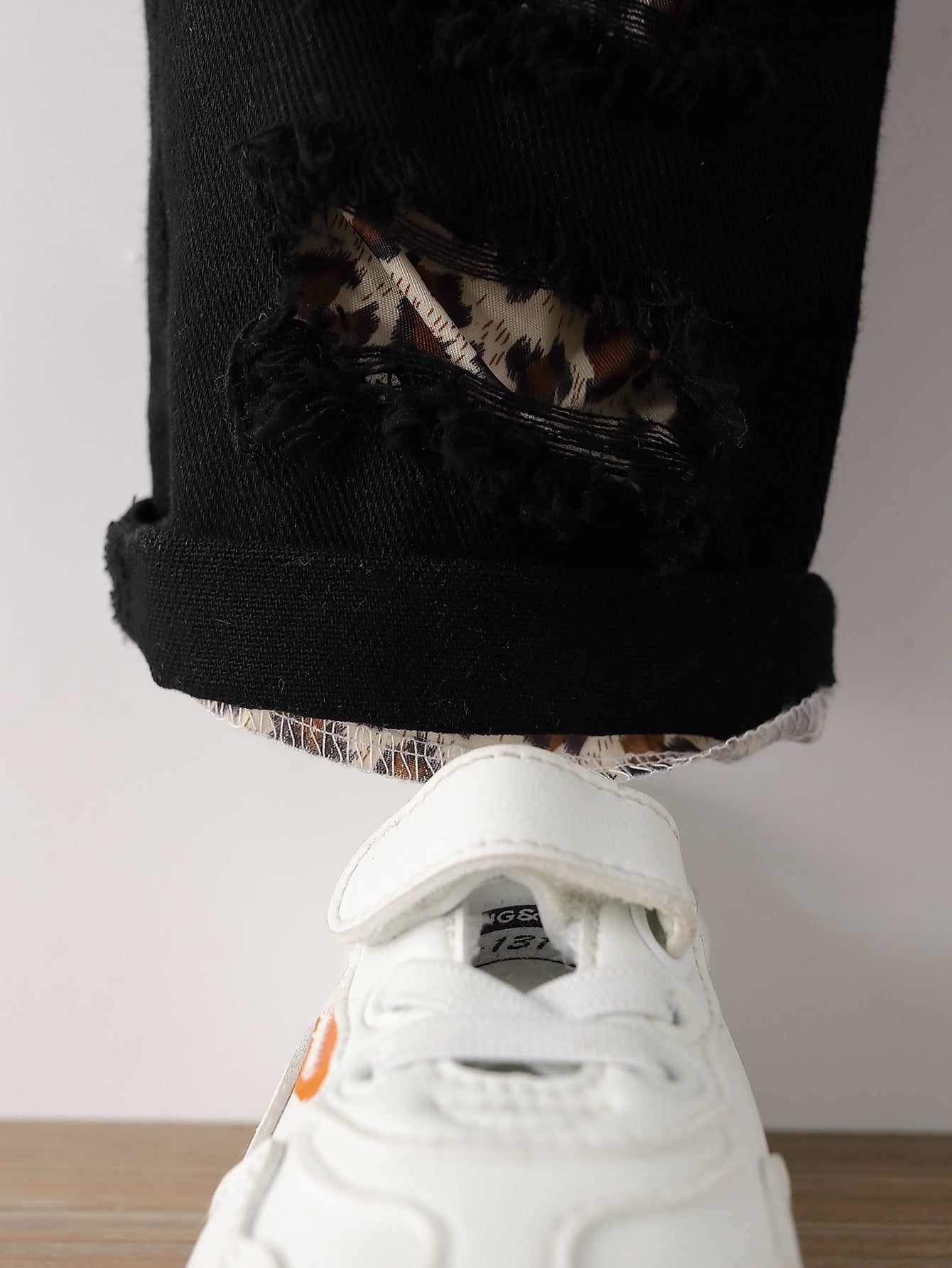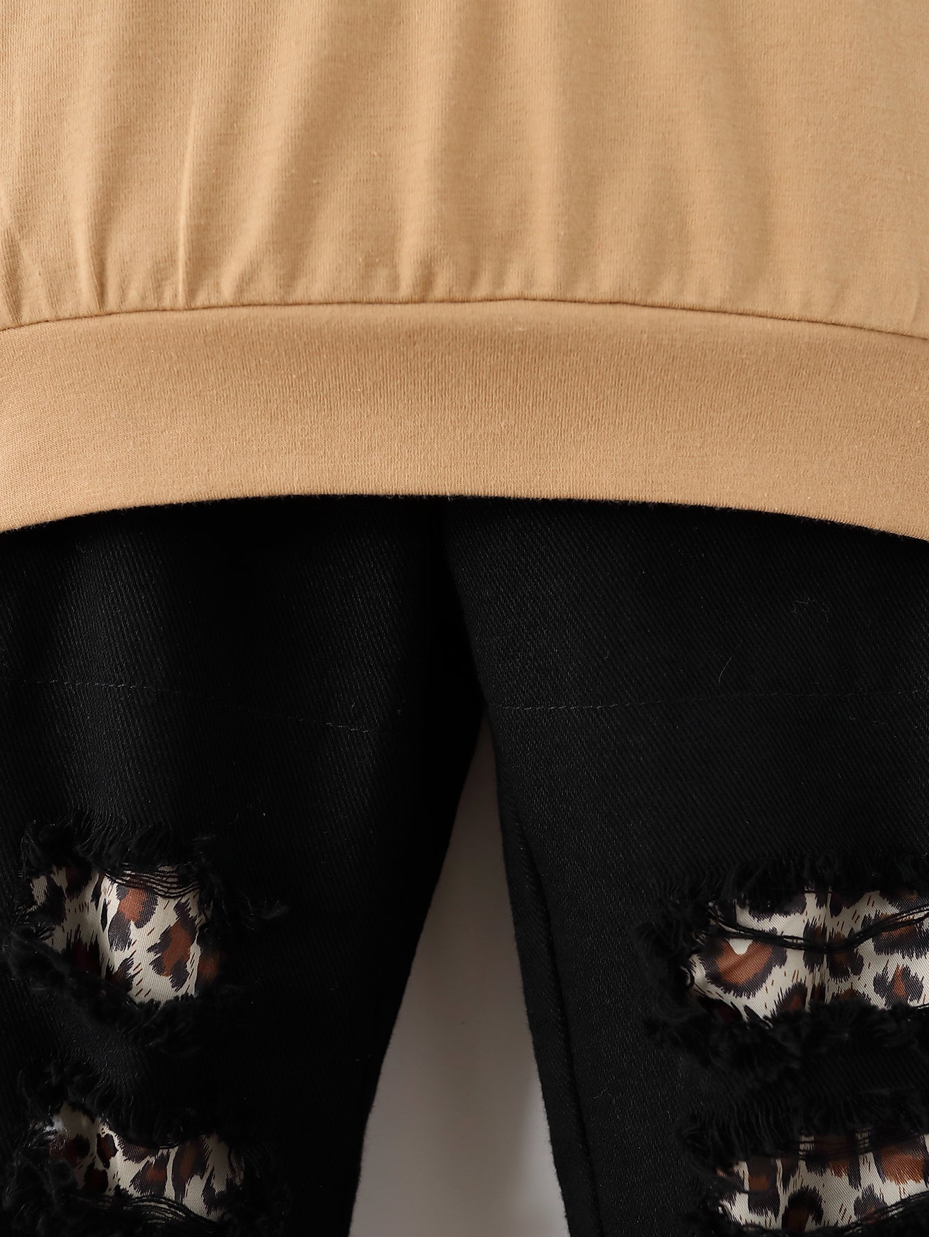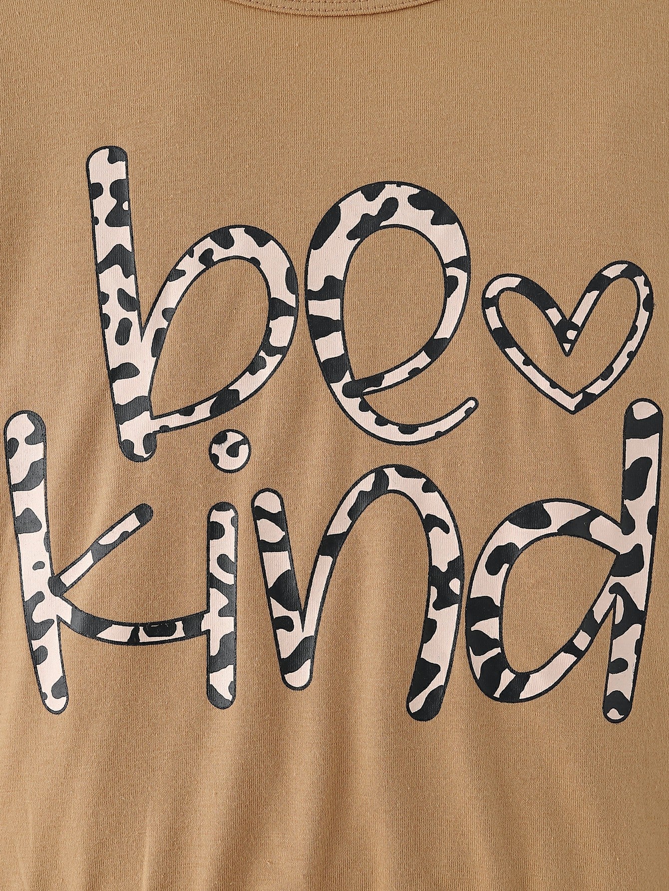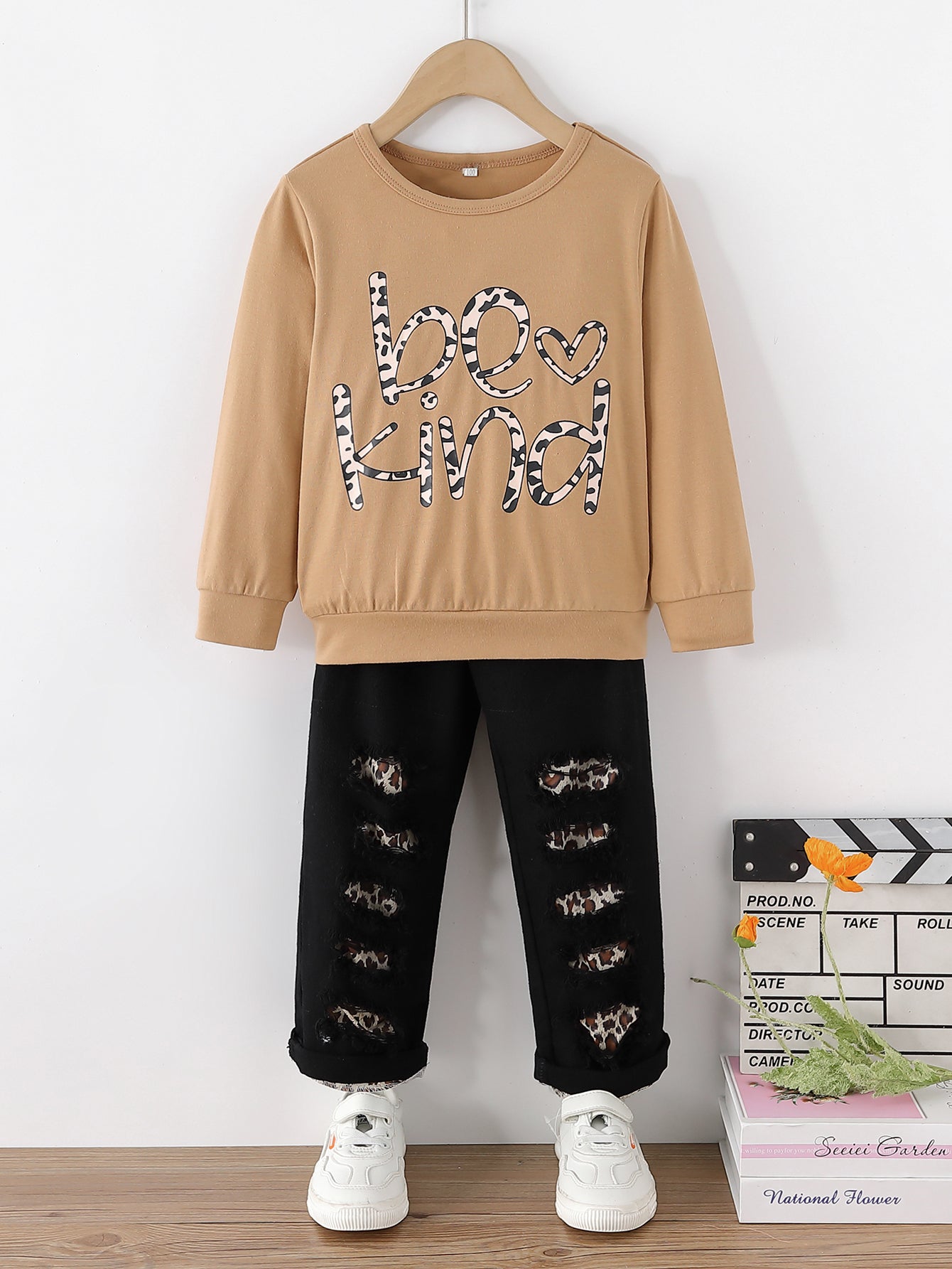 Girls BE KIND Graphic Tee and Leopard Lined Jeans Set